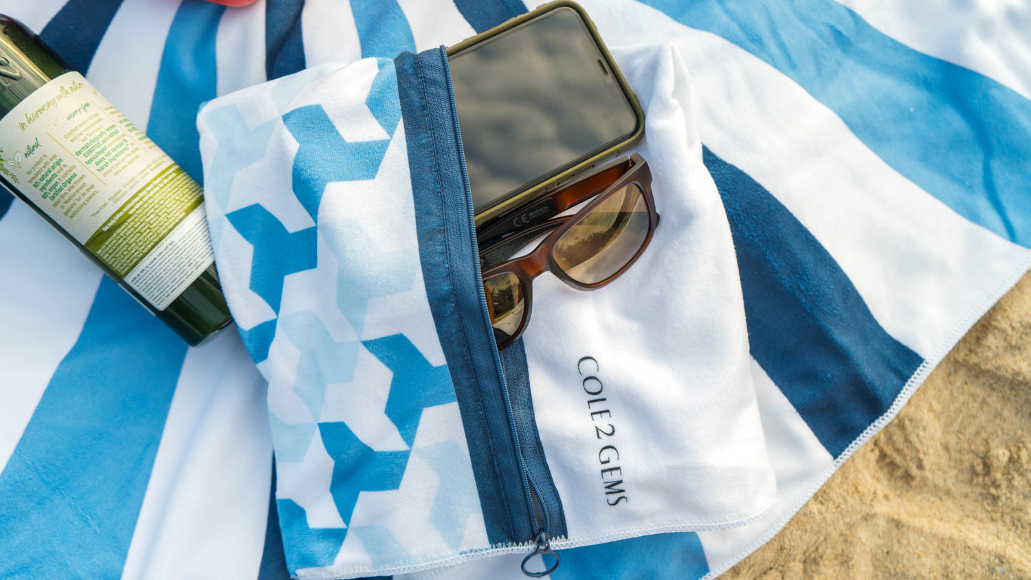 Cole2Gems hand towels are specifically designed for easy identification of the front and back, promoting hygiene. The custom elastic strap allows for compact storage when folded or rolled.
